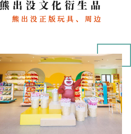 熊出没礼品屋是园区最大的熊出没主题商品店,拥有熊出没各系列好看又好玩的服装配饰、卡通玩具,带上您的孩子走进熊出没礼品屋,和熊大、熊二、光头强一起回家吧!